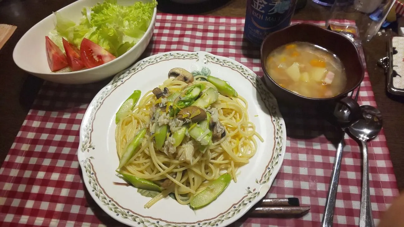 ホタテとアスパラのパスタ