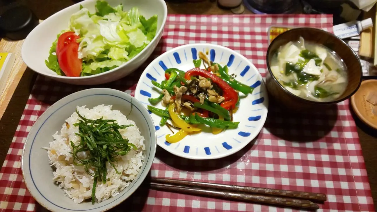 ごはんをメインに座らせたいときによくやるピーマンたちの塩昆布炒め。